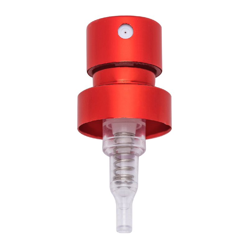 15 mm kohokuvioitu hajusteiden hienosumupumppu on lyhytmuotoinen hajuvesisumutin, jota käytetään yleensä kannettaviin tai pienikapasiteettisiin hajuvesipulloihin. Sen pumppupää on halkaisijaltaan 15 mm ja se on varustettu tarkkuussumutustoiminnolla, joka voi suihkuttaa hienojakoista hajustisumua tasaisesti, mikä tekee tuoksusta kestävämmän ja levittyy tasaisesti iholle tai vaatteille. Lyhyt rakenne ei ole vain kaunis, vaan myös helppo kuljettaa mukana, sopii pieneen kosmetiikkalaukkuun tai käsilaukkuun ja tuoksun täydentämiseen milloin tahansa. Ruisku on yleensä valmistettu korkealaatuisista materiaaleista kestävyyden ja tiiviyden varmistamiseksi nestevuotojen estämiseksi. Sitä käytetään laajasti hajuvesien, voiteiden ja muiden tuotteiden pakkaamisessa.